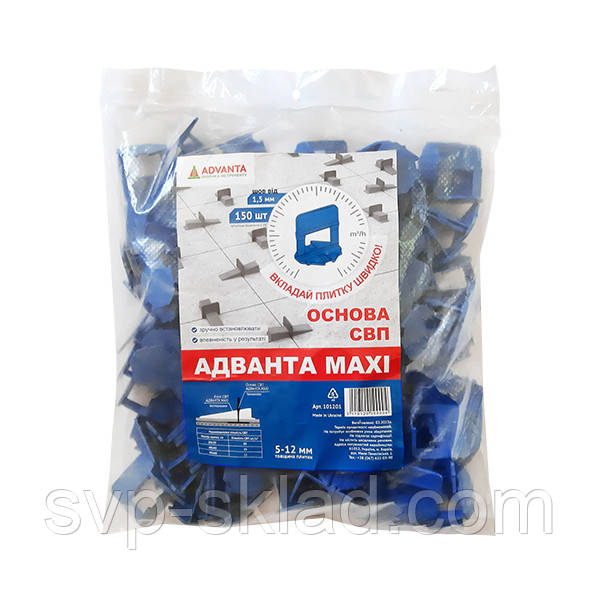 Система вирівнюючи плитки СВП АДВАНТА MAXI - спеціальне будівельне пристосування, що дозволяє рівно і точно облицьовувати керамічною плиткою або ж керамогранітом будь-яку поверхню, будь то підлогу або стіни. Застосування даного пристосування забезпечить максимальне вирівнювання поверхні укладається плитки в площині, охороняючи від її перепадів на стиках і просідання. Підстава є основним елементом в системі вирівнювання плитки. Саме воно дозволяє домогтися практично ідеально рівної поверхні укладається плиткою.